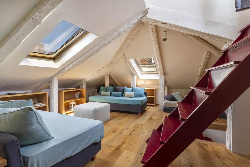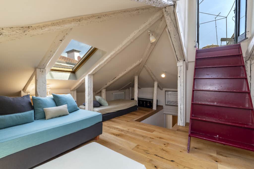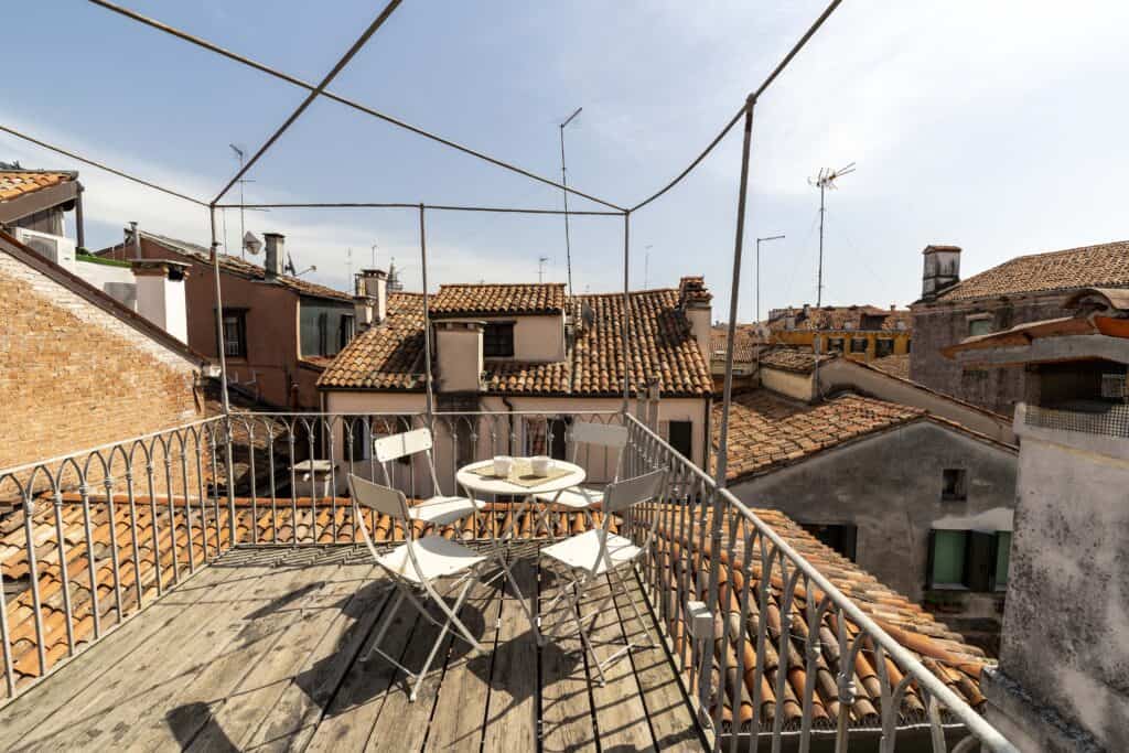Da qui, si accede alla camera da letto matrimoniale ed al bagno, fornito di doccia. Salendo al secondo piano vi è una graziosa mansarda , un’altra area relax ed il secondo bagno, anch’esso fornito di doccia. Da quì, l’accesso all’altana, la tipica “terrazza” veneziana dove potrai rilassarsi, gustarti un bicchiere di vino ed ammirare Venezia dall’alto con una vista tutta privata e straordinaria!