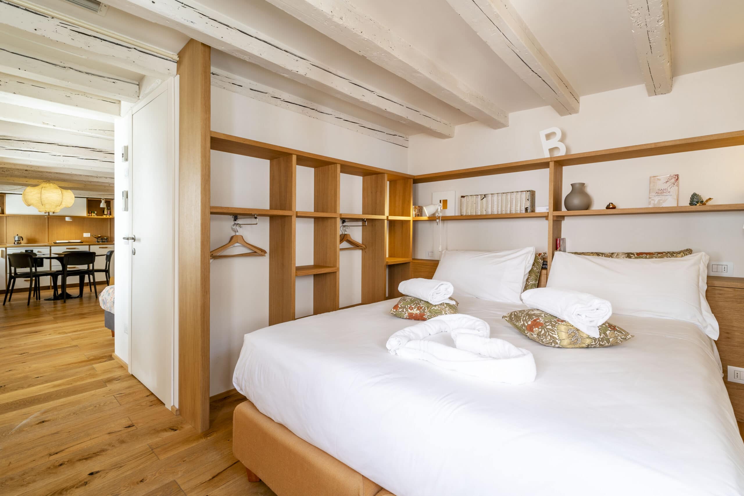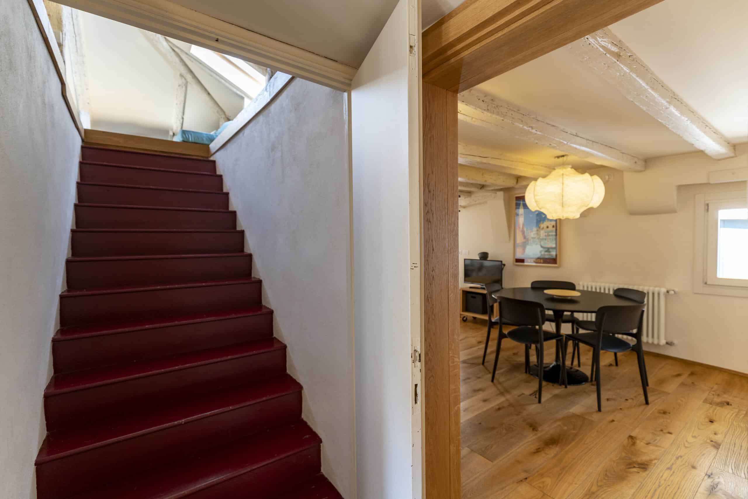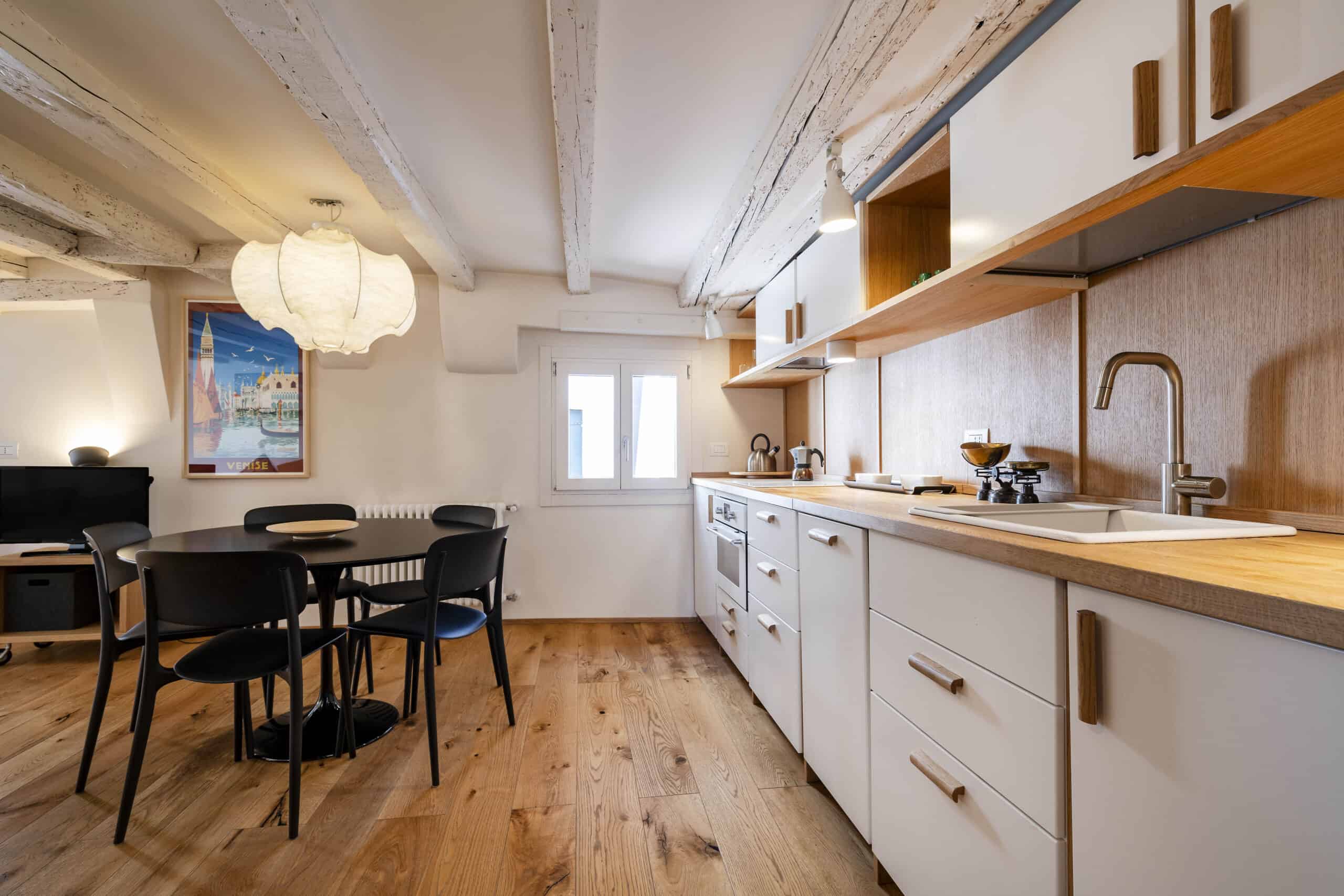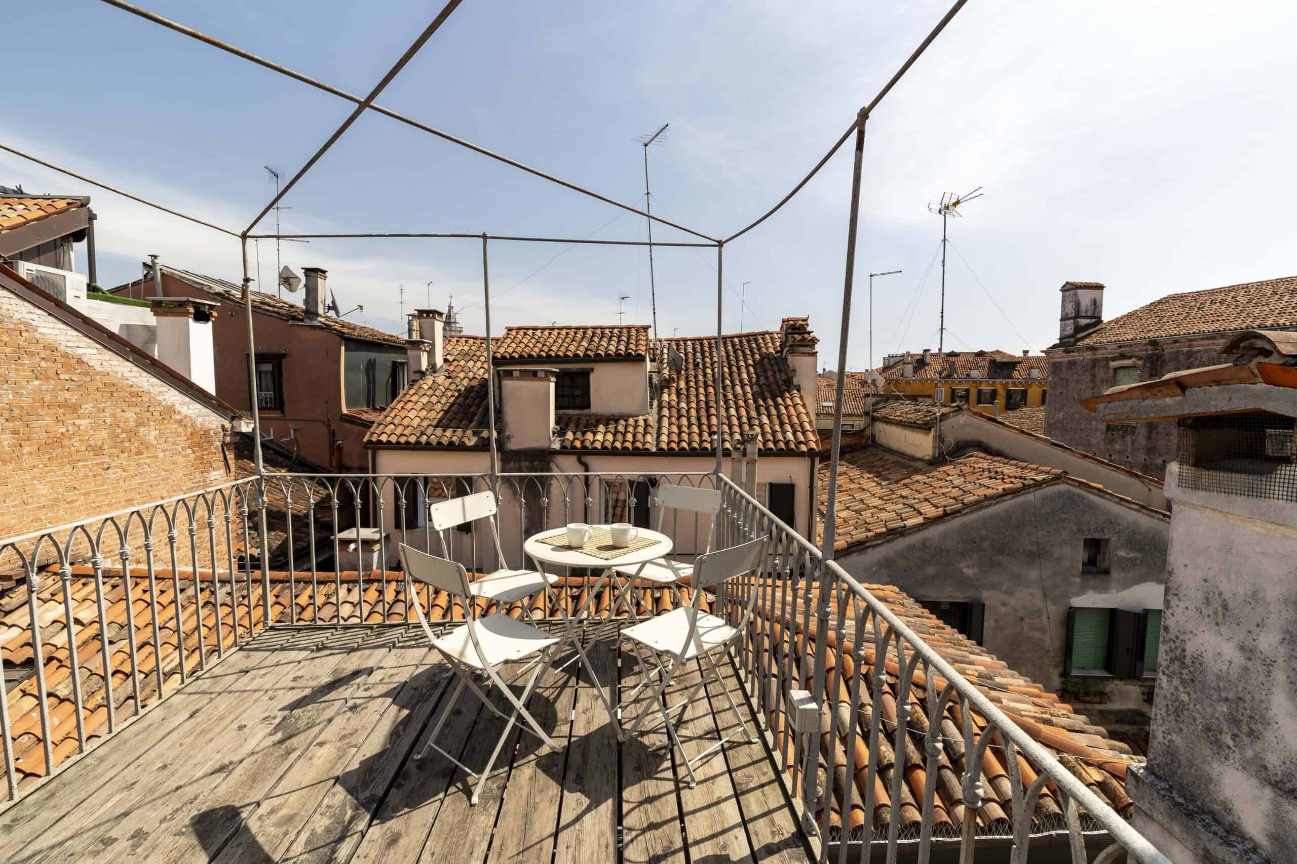 Qui ti sentirai a casa, i caldi toni del legno e le luci soffuse a coccolarti ed immergerti con un’ indimenticabile vista sui tetti di Venezia, dalla spaziosa altana, nell’atmosfera di questa magica città. L’appartamento si trova al secondo piano e, una volta salite le scale, ti accoglierà con tutto il suo calore mettendo a tua disposizione ogni suo spazio.