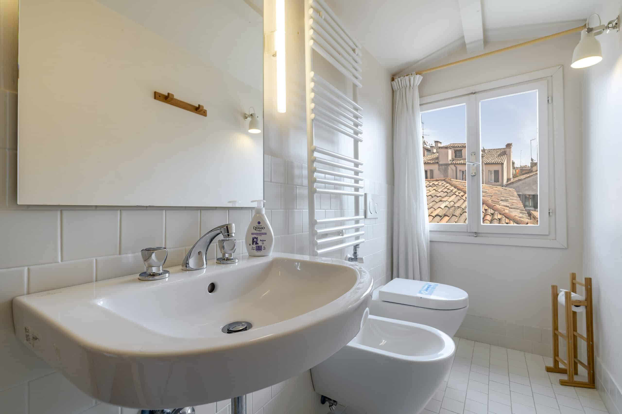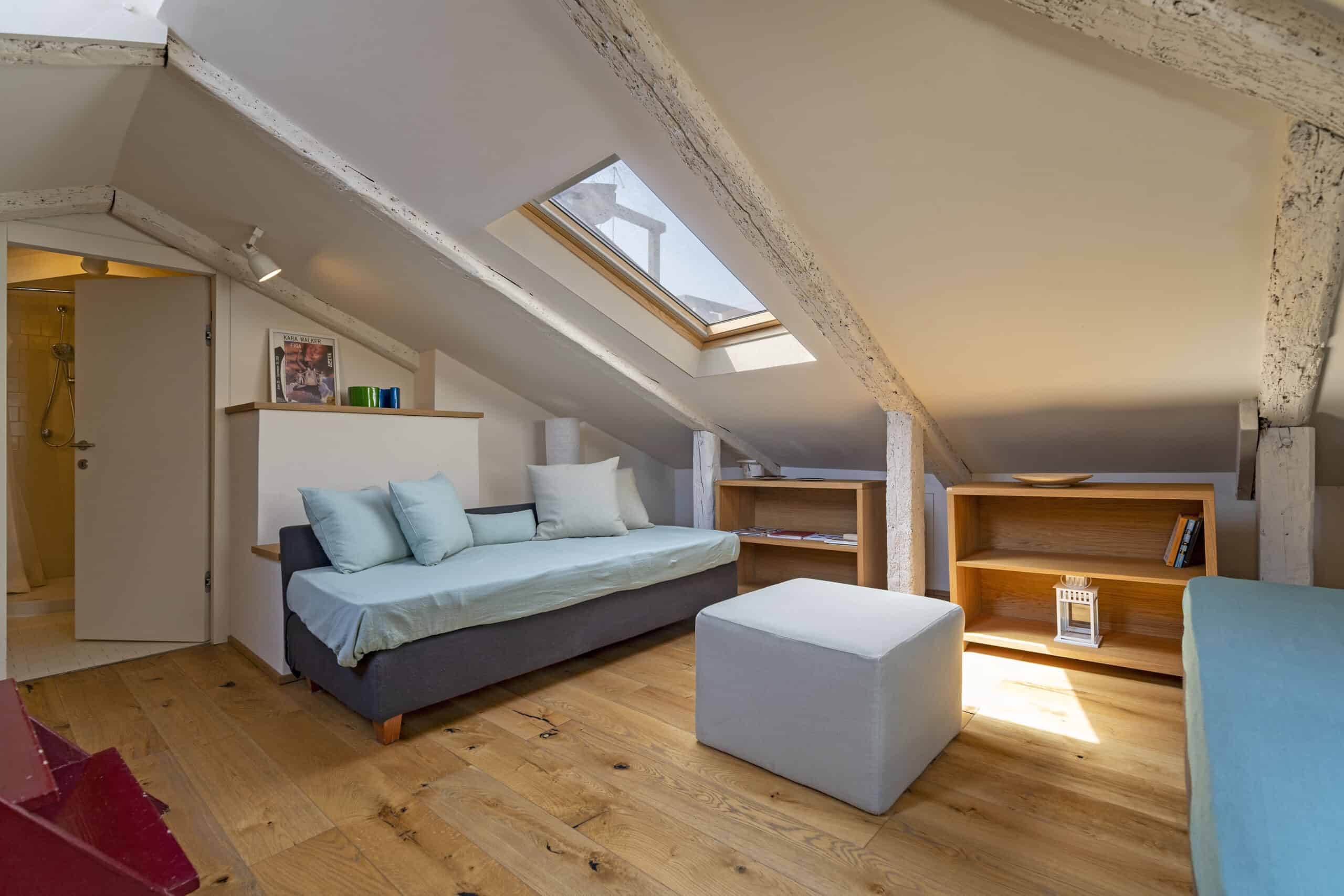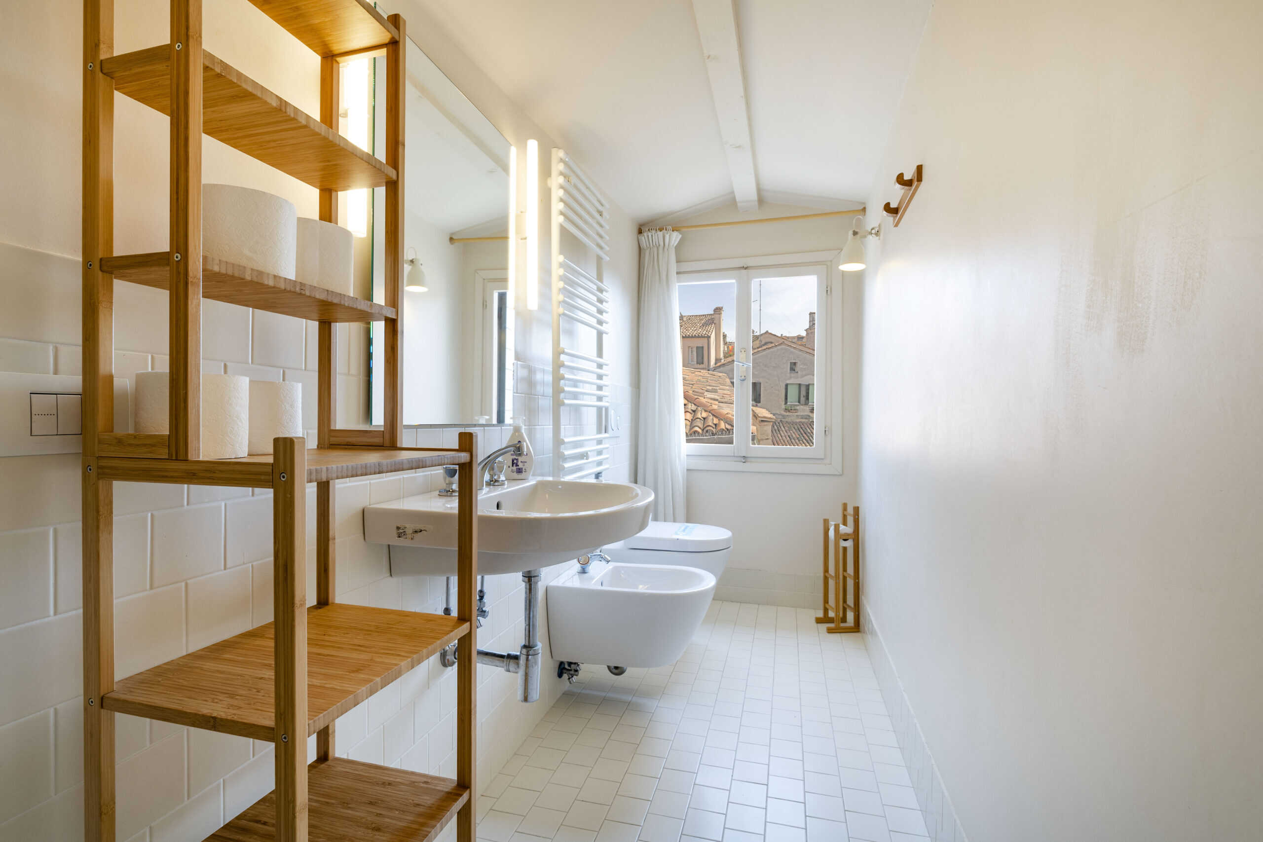 Da qui, si accede alla camera da letto matrimoniale ed al bagno, fornito di doccia. Salendo al secondo piano vi è una graziosa mansarda , un’altra area relax ed il secondo bagno, anch’esso fornito di doccia. Da quì, l’accesso all’altana, la tipica “terrazza” veneziana dove potrai rilassarsi, gustarti un bicchiere di vino ed ammirare Venezia dall’alto con una vista tutta privata e straordinaria!