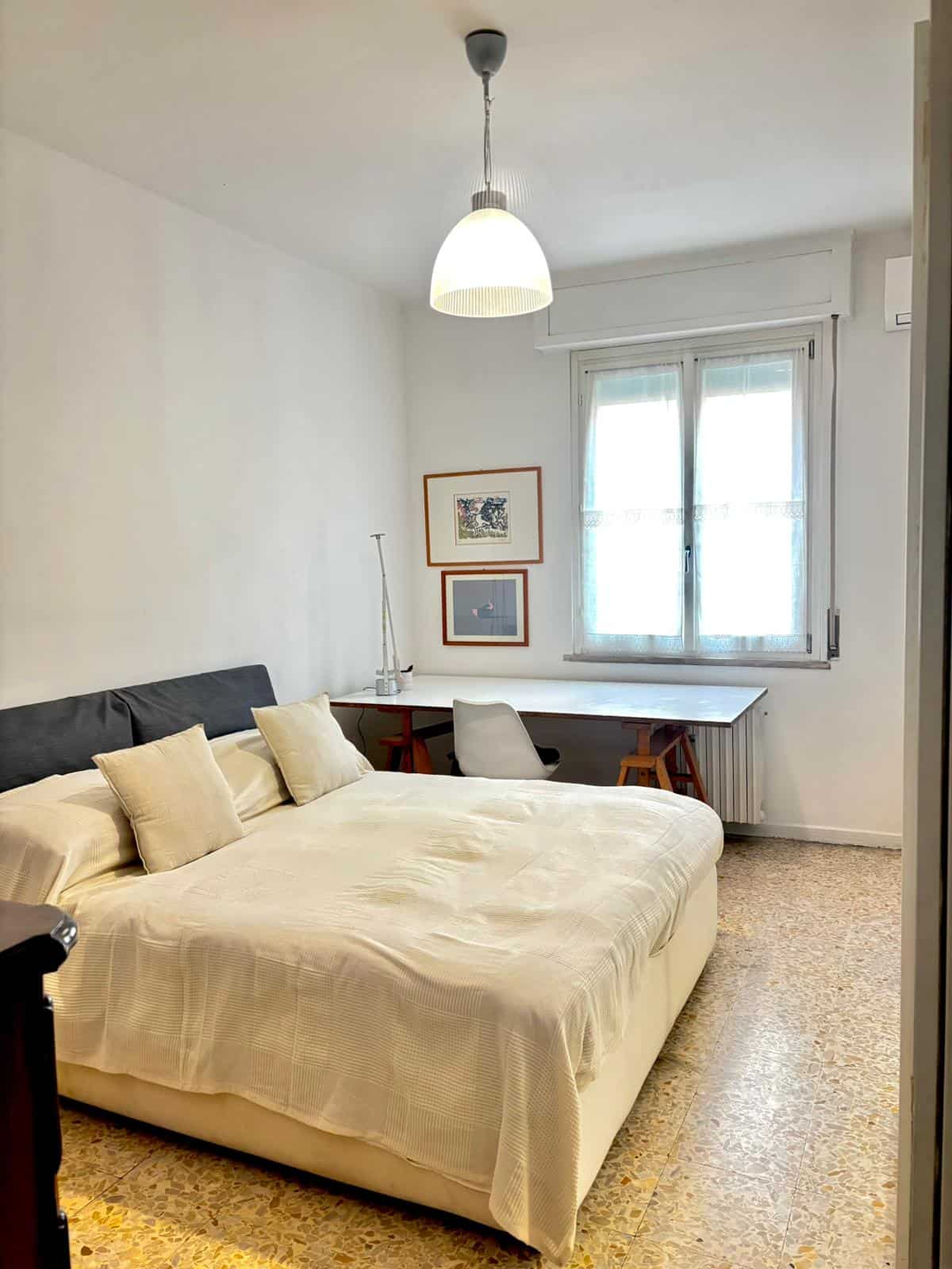 L’alloggio si trova al secondo piano di un condominio con ascensore. L’appartamento dispone di una camera matrimoniale ampia e luminosa, arredata in stile moderno e minimale, perfetta per rilassarsi dopo una giornata di lavoro o di esplorazione della città.
