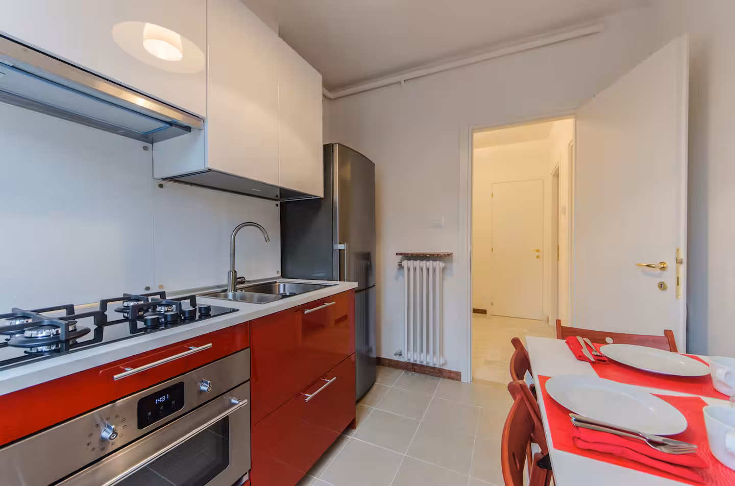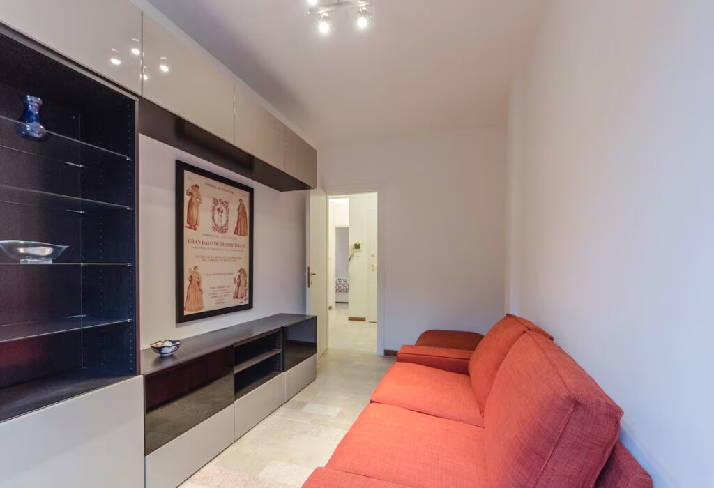 L’appartamento può ospitare fino a 3 persone ed è dotato di aria condizionata nelle camere, connessione wifi, lavatrice, moka, forno, fornelli e lenzuola, coperte, fodere per cuscini, asciugamani, shampoo e saponette in base al numero di ospiti.