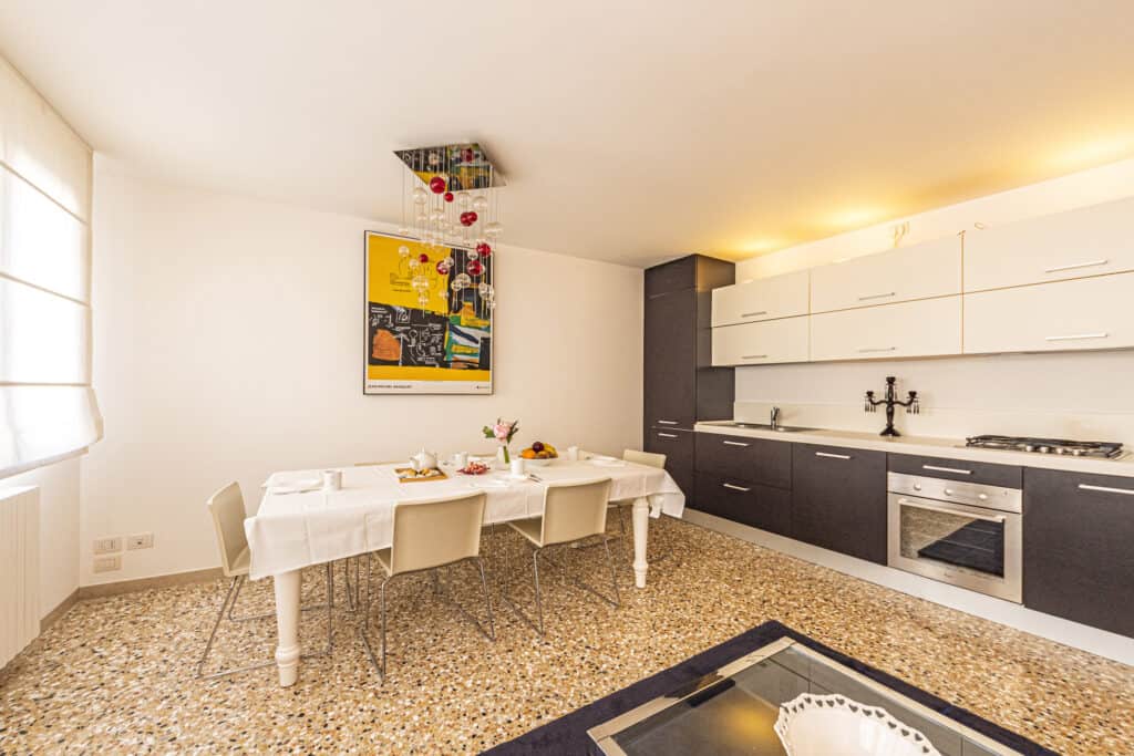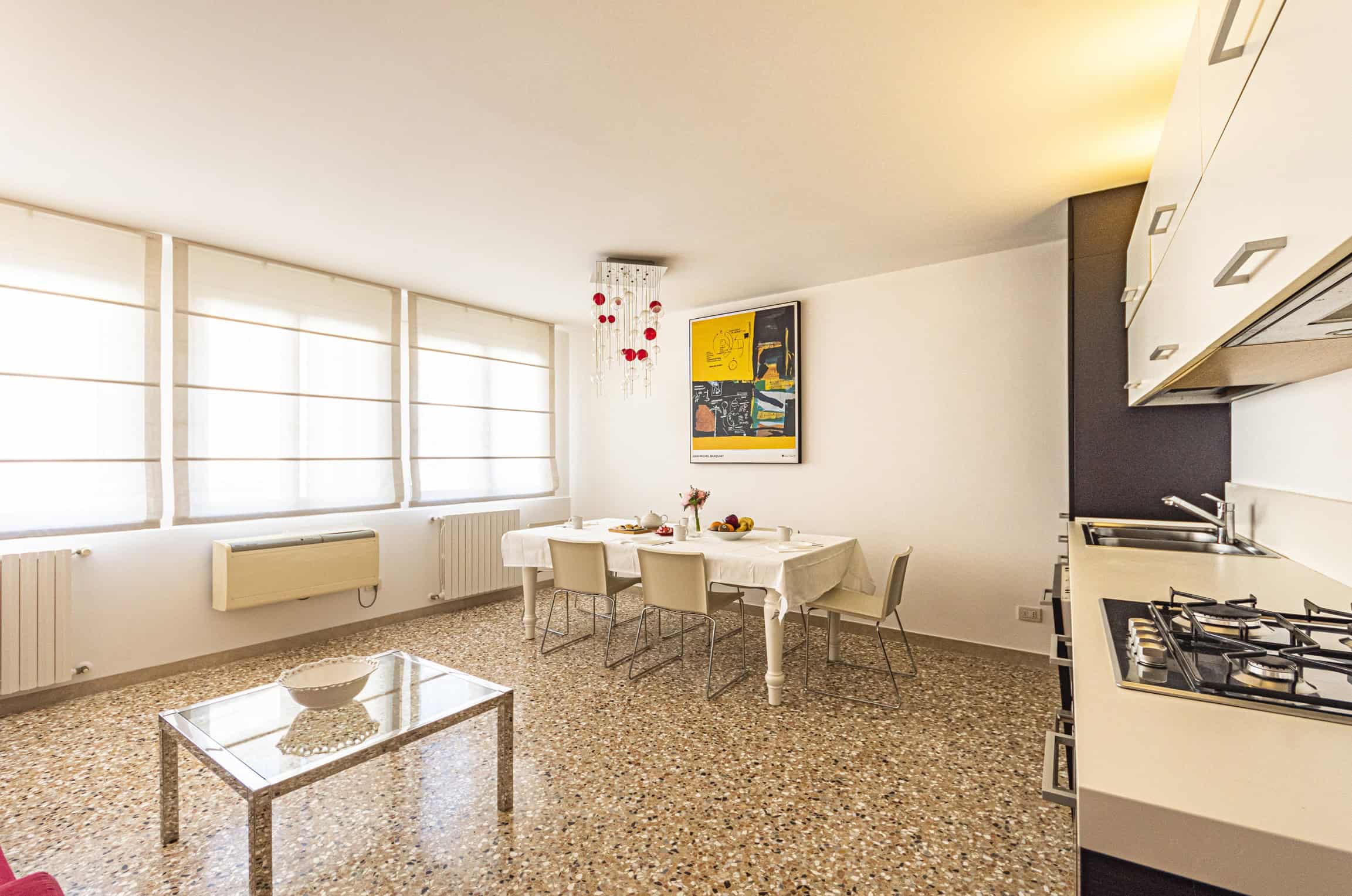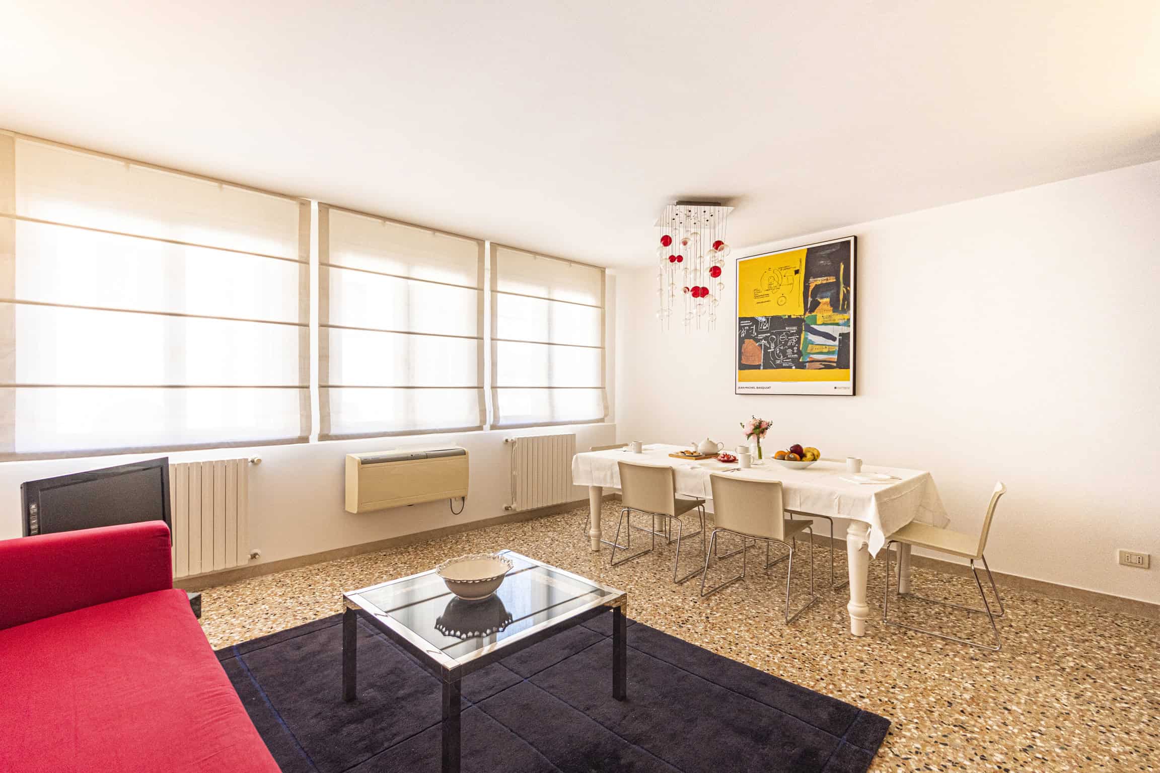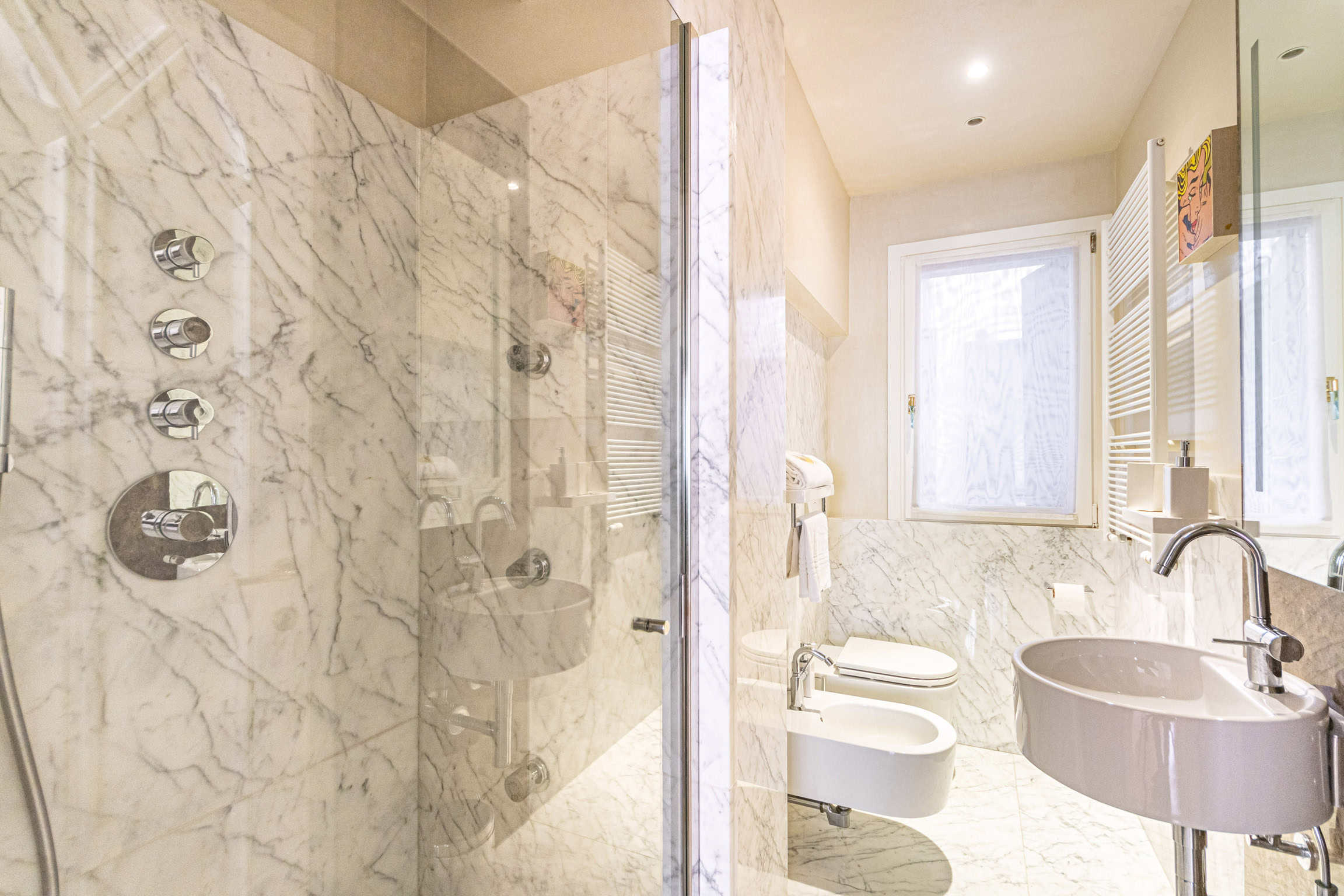 This comfortable and spacious apartment consists of a kitchen equipped with the essentials for cooking, a bright and luxurious living area to relax after a day spent walking around the city, two large and welcoming double bedrooms and two elegant marble bathrooms, one with a shower and one with a bathtub. The accommodation offered is suitable for couples and travelers who want to enjoy a few days in the beautiful Venice.