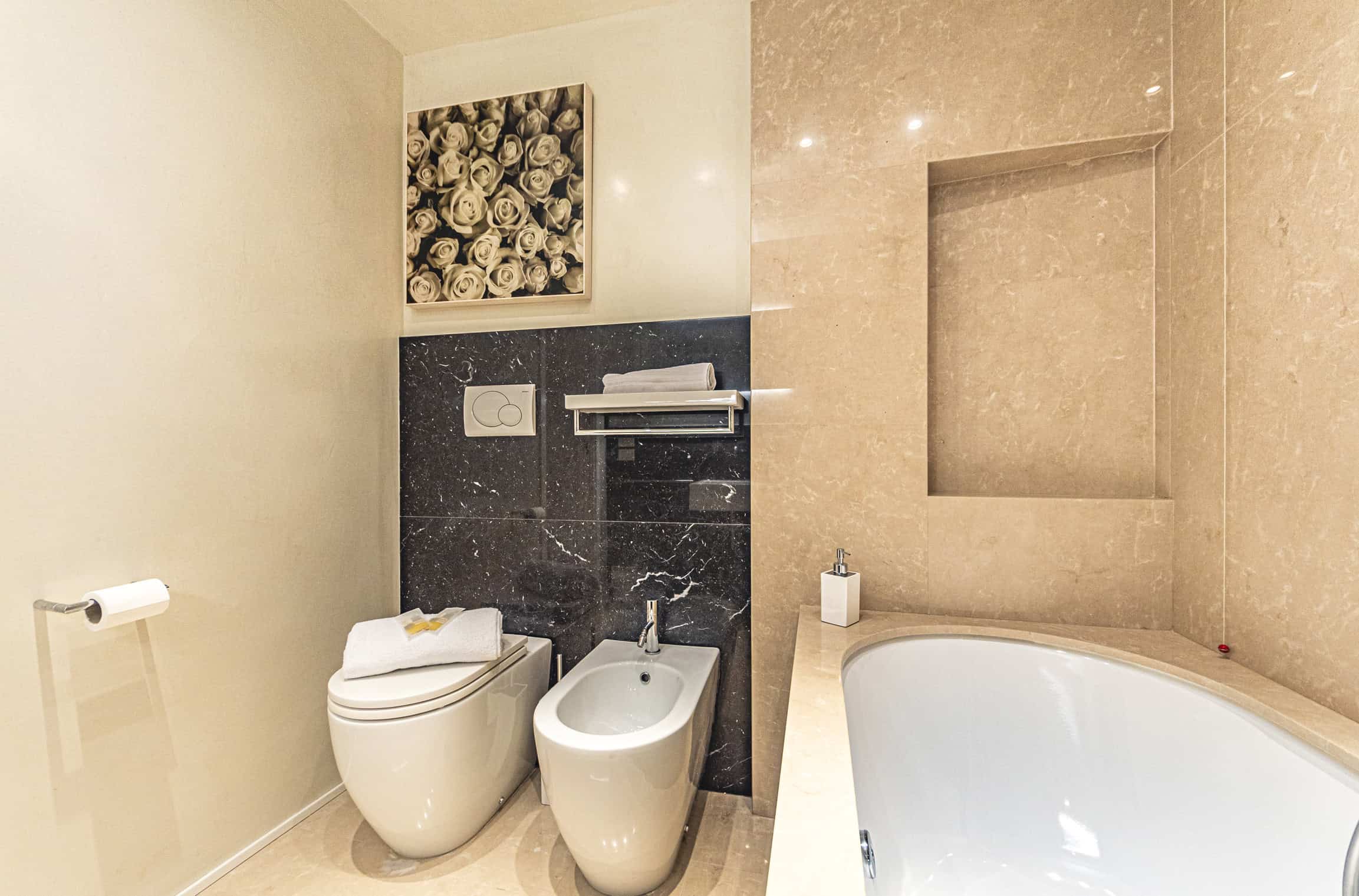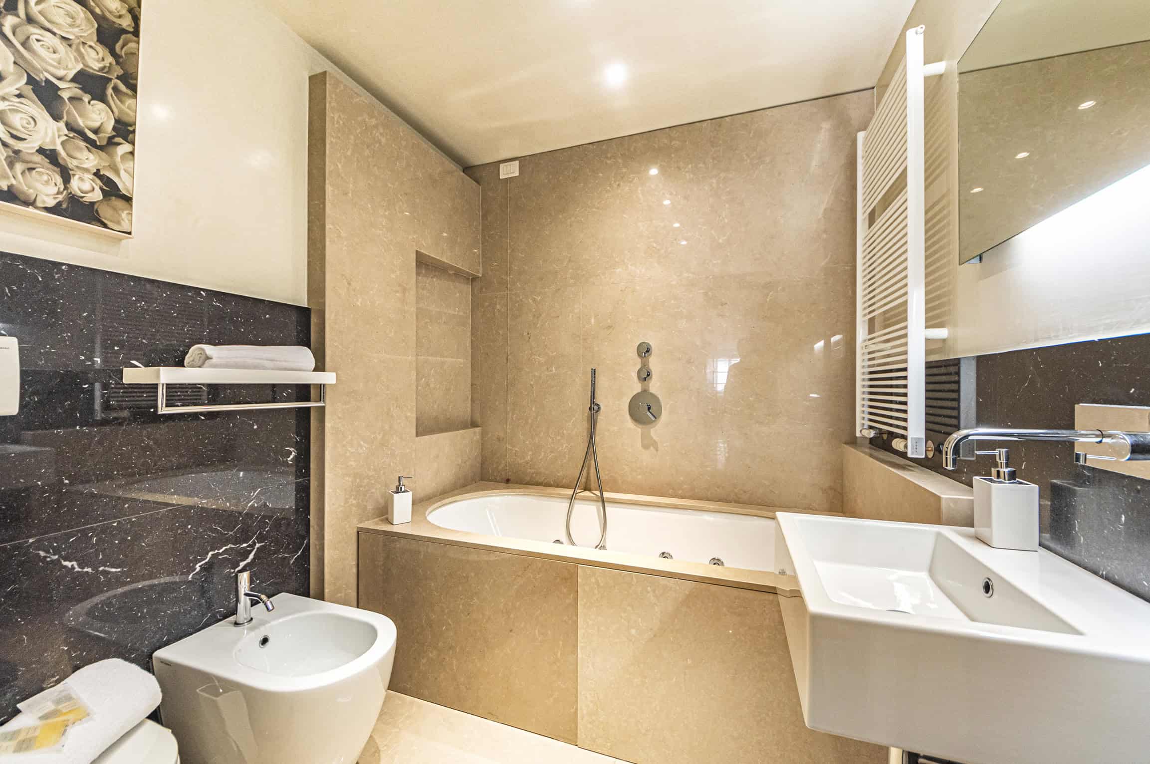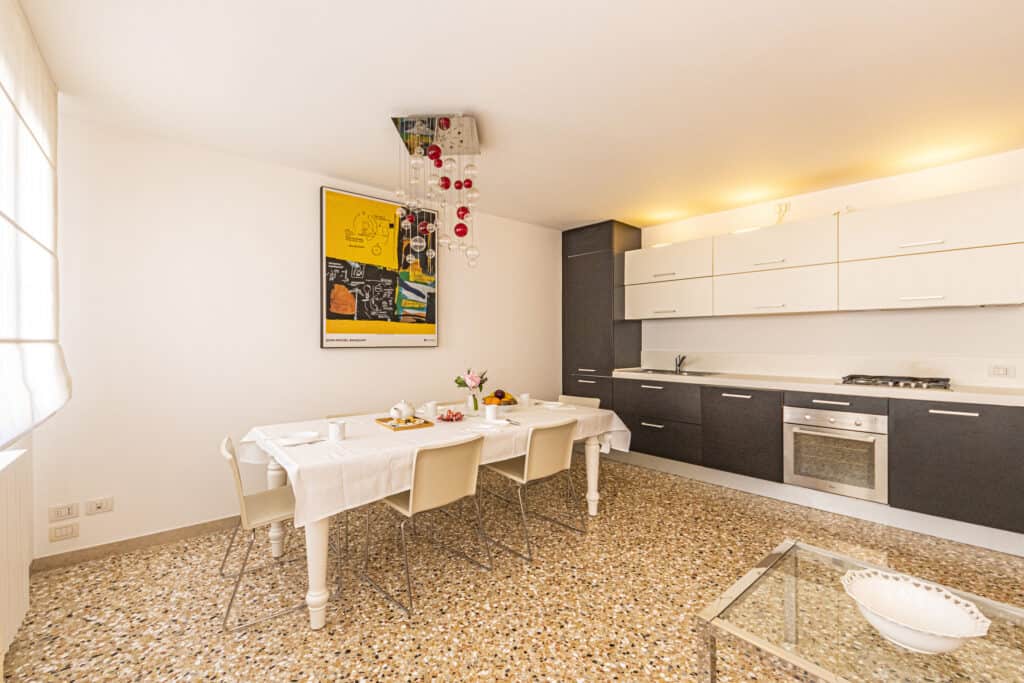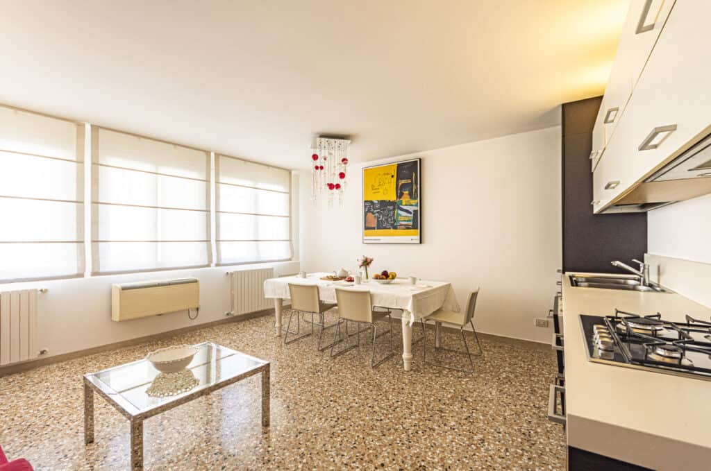 This comfortable and spacious apartment consists of a kitchen equipped with the essentials for cooking, a bright and luxurious living area to relax after a day spent walking around the city, two large and welcoming double bedrooms and two elegant marble bathrooms, one with a shower and one with a bathtub. The accommodation offered is suitable for couples and travelers who want to enjoy a few days in the beautiful Venice.